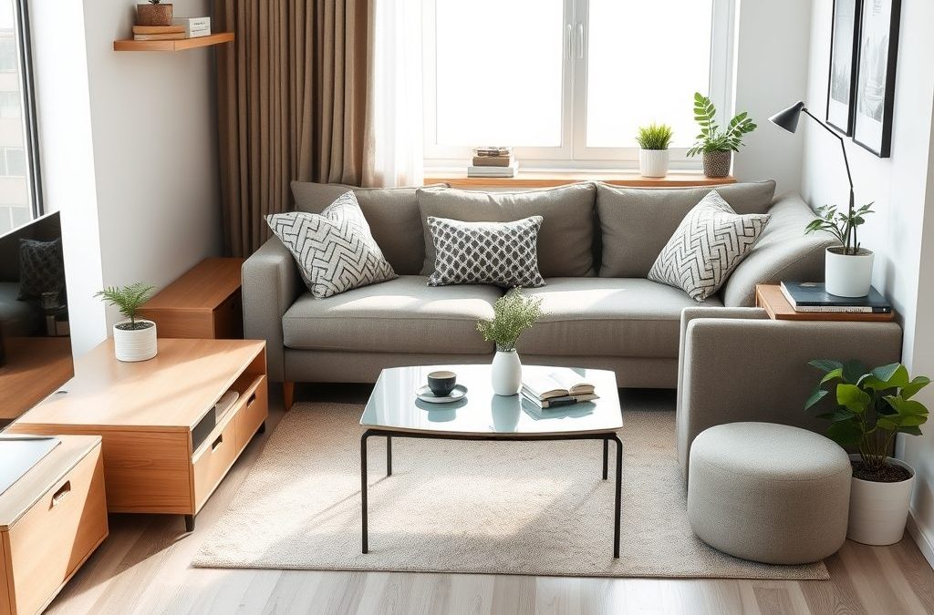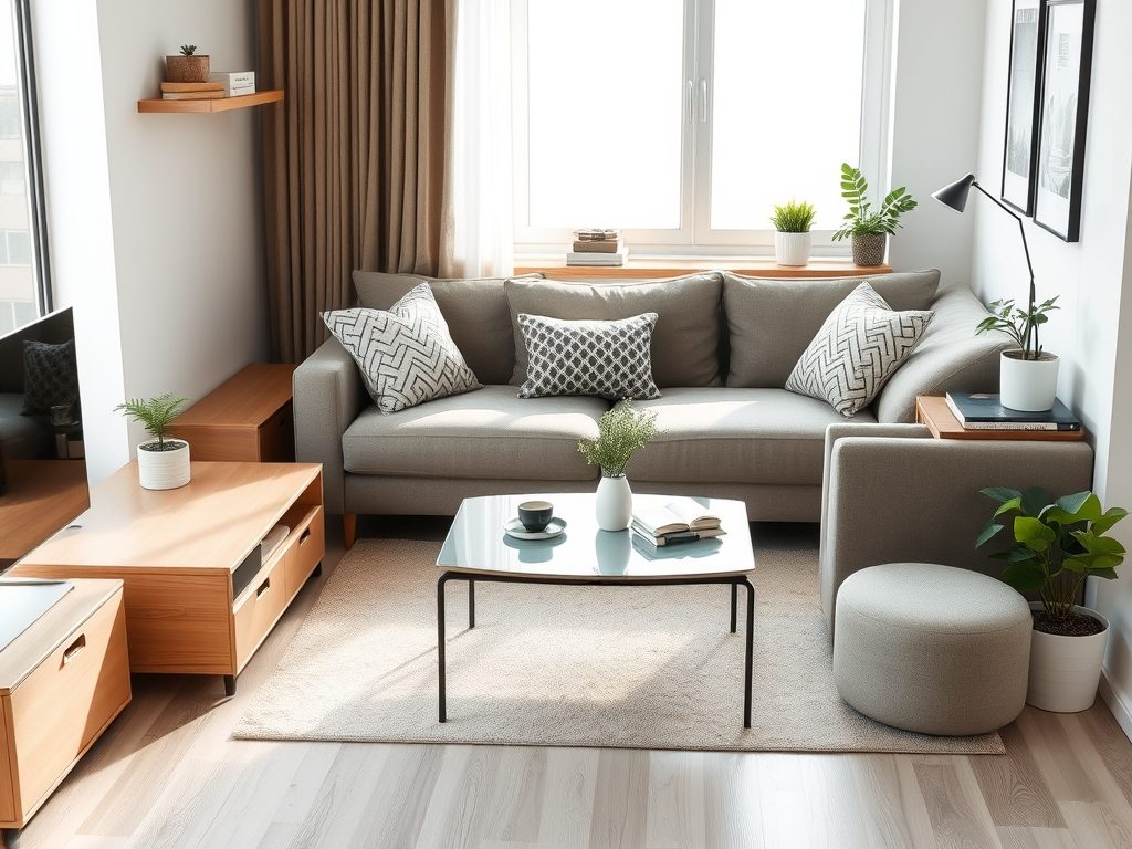 - Układ mebli w małym salonie: jak połączyć funkcjonalność z przestronnością i estetyką