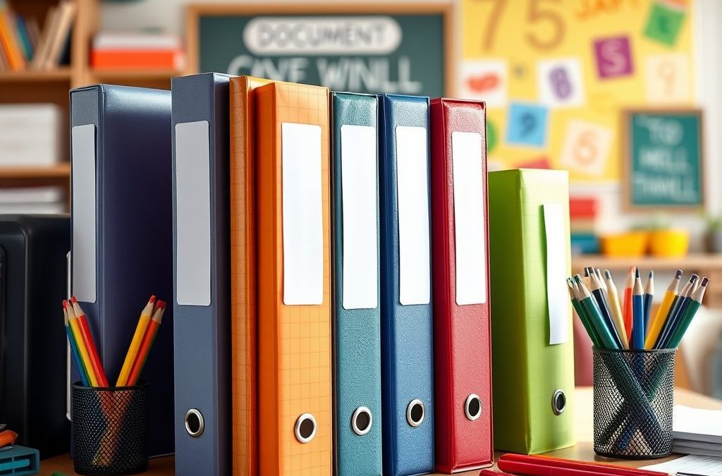 Wybierz segregatory i teczki z trwałych materiałów, aby zapewnić ochronę dokumentów dziecka. Sprawdź, czy segregatory mają etykiety na grzbiecie, co ułatwi identyfikację zawartości. Zastosuj różne kolory segregatorów lub teczek dla łatwiejszej segregacji dokumentów. Teczki, takie jak harmonijkowe czy z gumką, dobrze zabezpieczą prace plastyczne oraz inne delikatne dokumenty. Użyj przekładek z podpisami dla lepszej organizacji treści, co pozwoli uniknąć przeszukiwania wszystkich dokumentów.