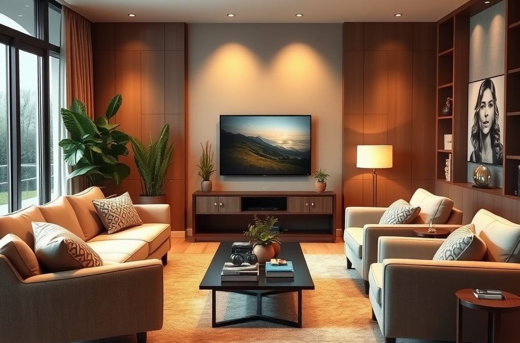 Rozważ również wykorzystanie dekoracji ściennych, które mogą zastąpić telewizor jako centralny element pomieszczenia. Kreatywne obrazy, plakaty czy fotografie mogą podkreślić charakter salonu. Rośliny wprowadzą naturalny klimat, poprawiając atmosferę i jakość powietrza.